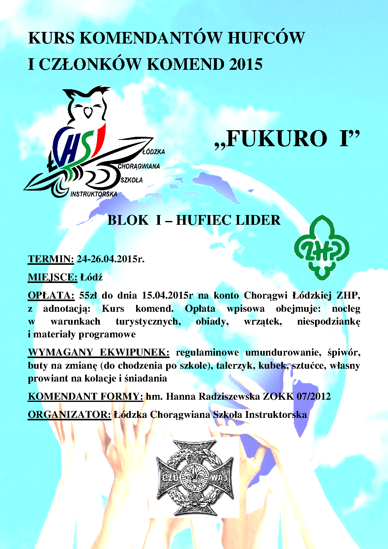 W dniach 24-26 kwietnia 2015r. w Łodzi odbędzie się moduł Kursu Członków Komend Hufców - LIDER. Szczegóły w załączonej ulotce.