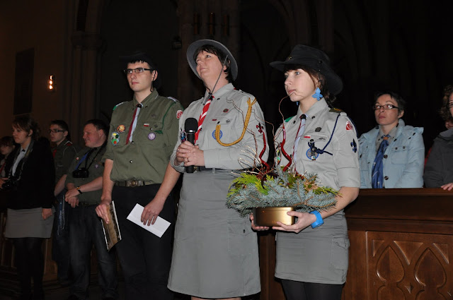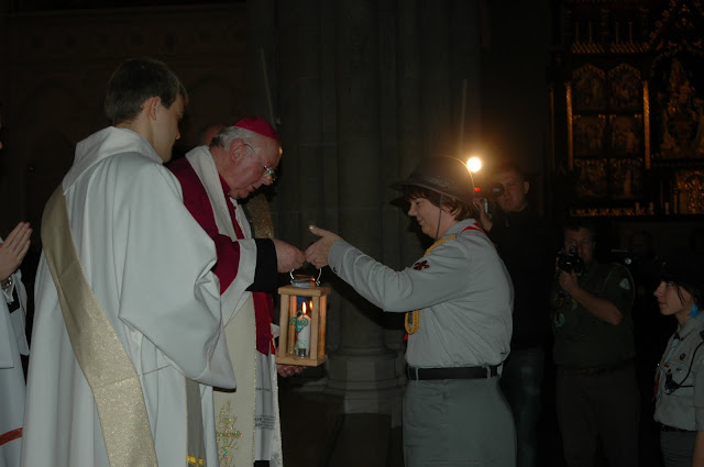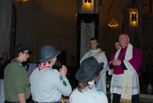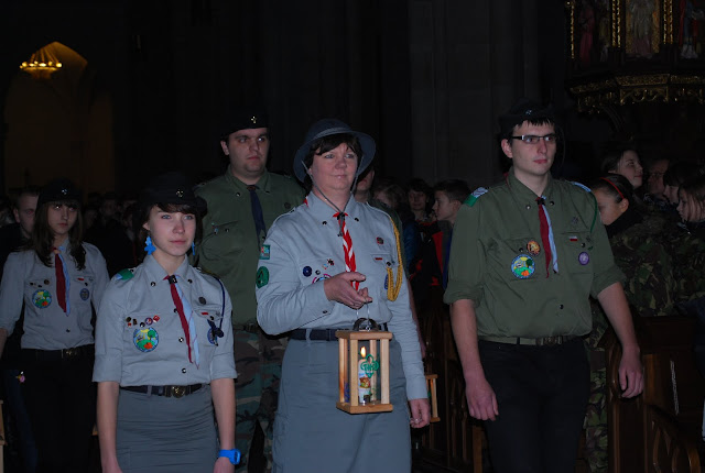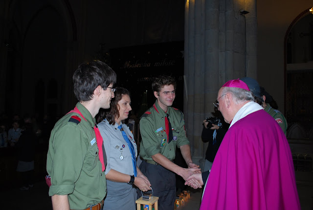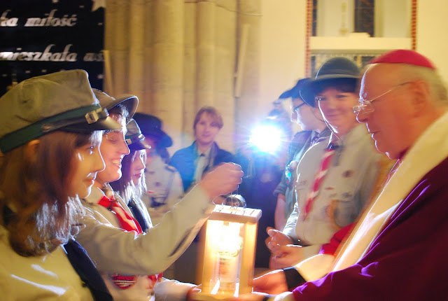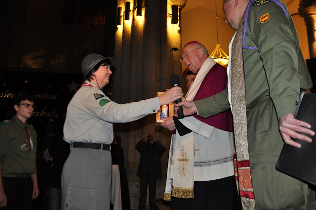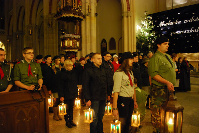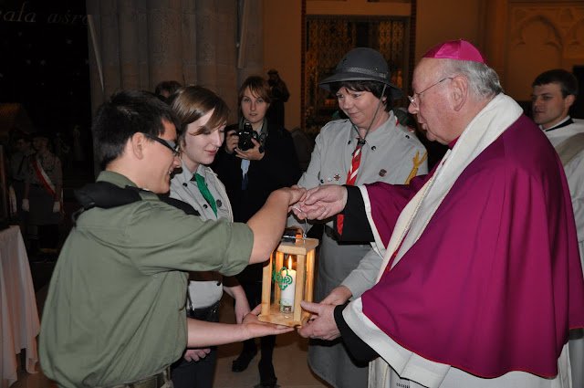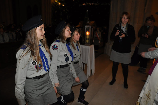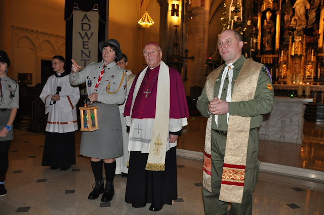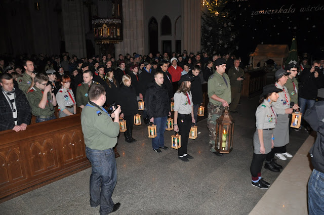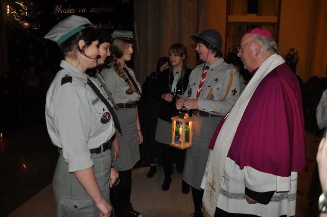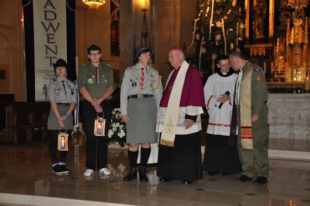 16.12.2011 - harcerki i harcerze naszej chorągwi przekazują Światło z Betlejem abp. Władysławowi Ziółkowi, metropolicie łódzkiemu. Tak rozpoczyna się nasza wędrówka z BŚP po Łodzi i województwie.